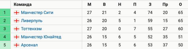 Отставание от «Манчестер Сити», который сейчас лидирует в АПЛ, – 5 очков. От «Ливерпуля» отставание также 5 очков, но у команды Юргена Клоппа есть матч в запасе.